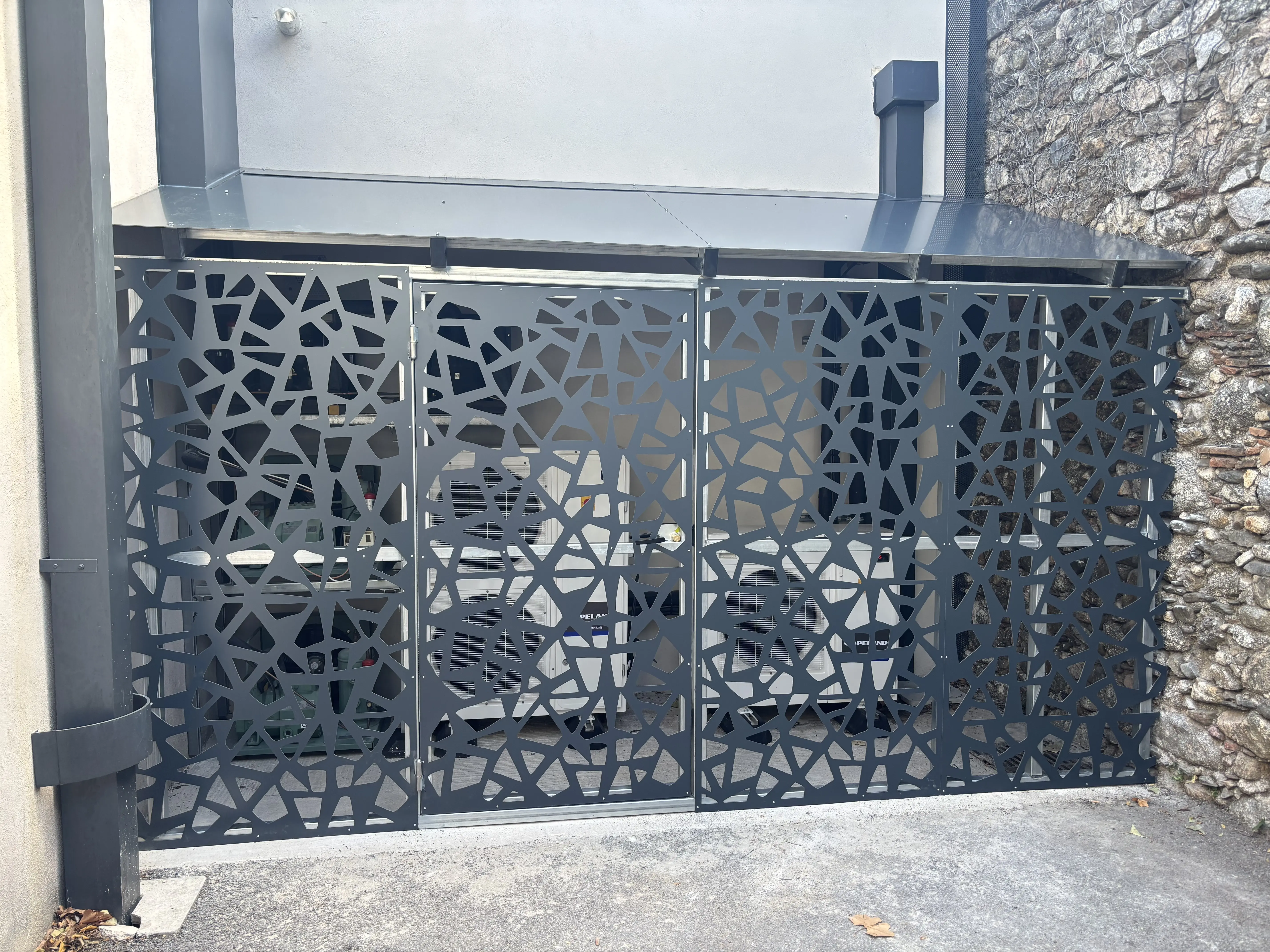 Solandis est fière de présenter l’une de ses dernières réalisations sur mesure : la conception et la fabrication d’un habillage complet pour un ensemble de pompes à chaleur et de climatisations, réalisé en aluminium composite gris RAL 7016, au sein d’un établissement médico-social situé au Vigan, dans le Gard.